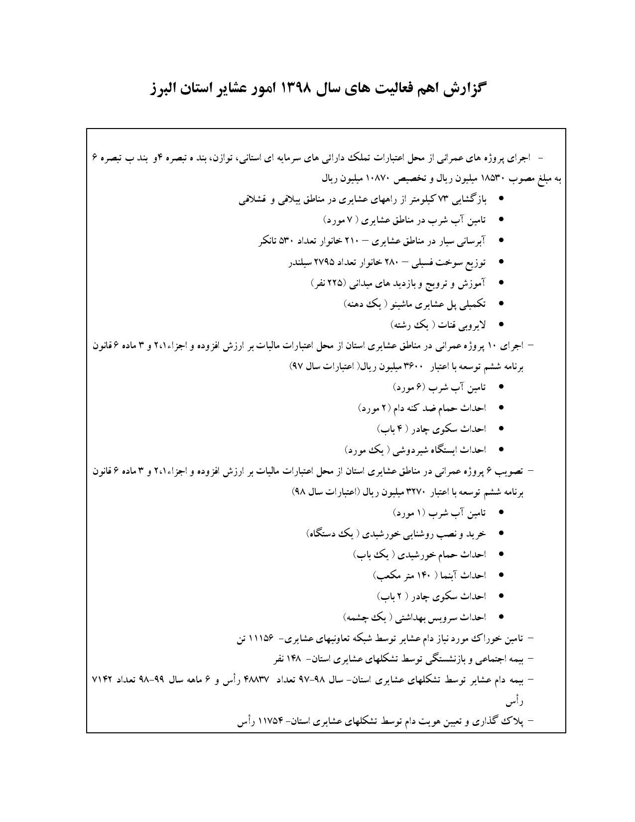 گزارش عملکرد سال ۱۳۹۸ امور عشایر استان البرز دستهبندی نشده می 10, 2020می 11, 2020 ادمیندیدگاهی بنویسید در گزارش عملکرد سال ۱۳۹۸ امور عشایر استان البرز